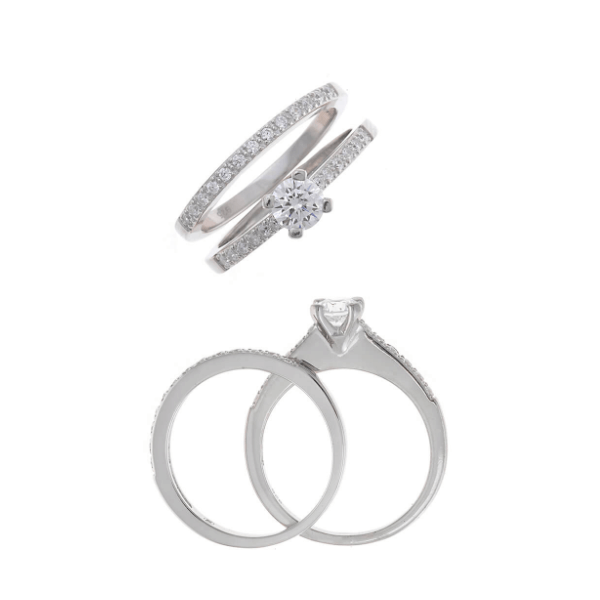 Este elegante set de anillos en plata rodiada de primera ley combina dos estilos clásicos en una única propuesta sofisticada: un solitario con circonita central y una media alianza con circonitas engastadas que lo acompaña. Juntos, forman un dúo armonioso y lleno de brillo, ideal para simbolizar momentos especiales o simplemente para disfrutar de una joya con personalidad.