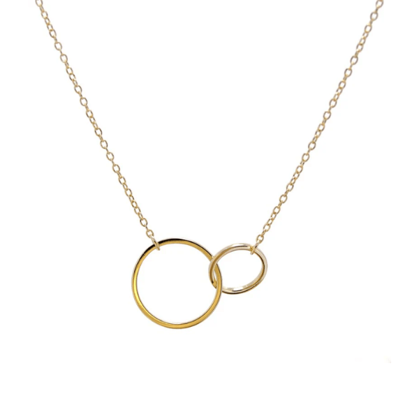 Una pieza moderna y elegante que combina sencillez con movimiento. Esta gargantilla en oro amarillo de primera ley presenta dos aros móviles en distintos tamaños que aportan dinamismo y estilo al diseño. Su acabado en brillo resalta la luminosidad del oro, convirtiéndola en una joya ideal para llevar a diario o en ocasiones especiales.