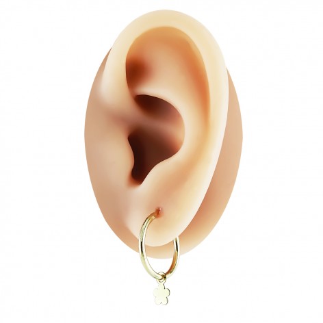 Pendientes aro con colgante flor en oro amarillo primera ley. Acabado brillo.