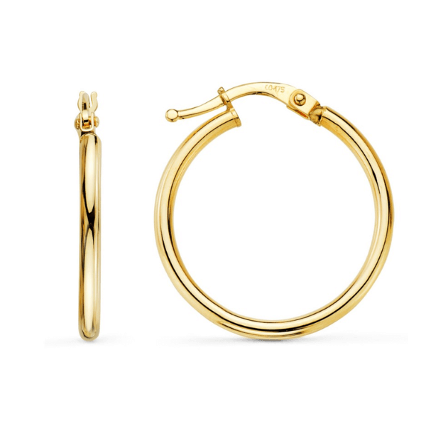 Clásicos y elegantes, estos pendientes de aro redondo en oro amarillo de primera ley son una joya imprescindible para cualquier colección. Su diseño limpio y pulido, con acabado brillo, los convierte en una opción atemporal que nunca pasa de moda.