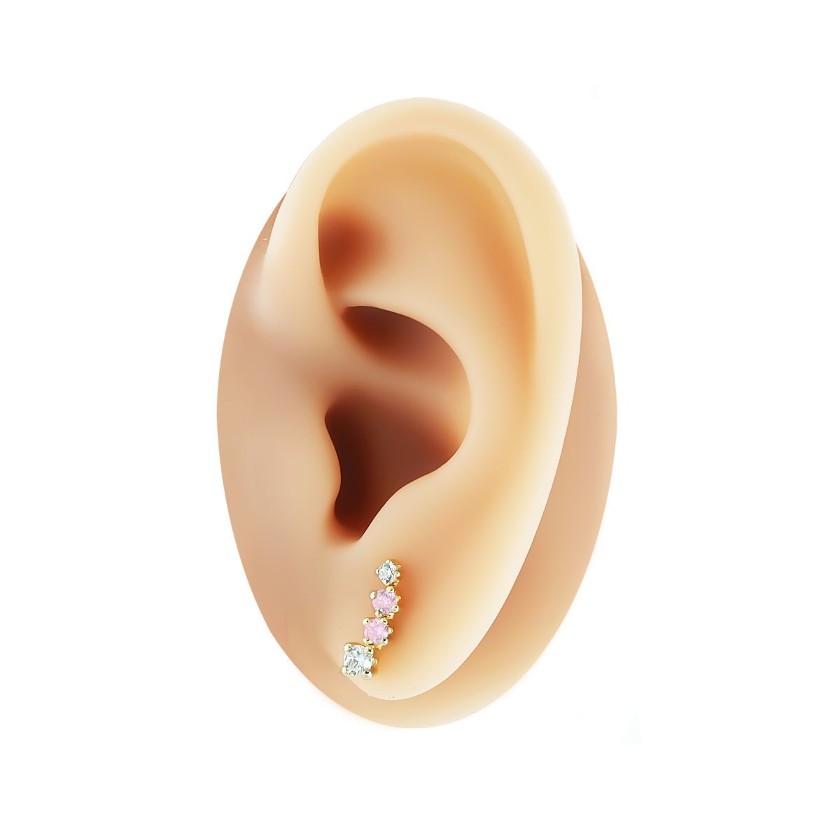 - Piedras: 1 circonita blanca de 3 mm, 2 circonitas rosas de 2,5 mm y 1 circonita blanca de 2 mm
