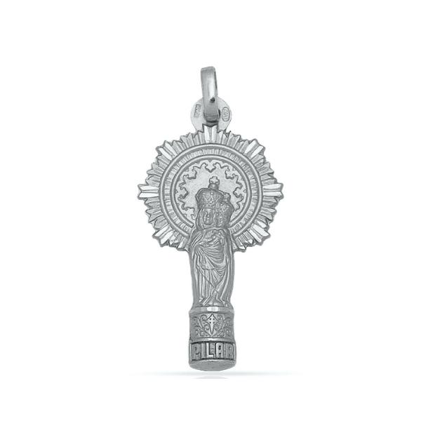 Una pieza llena de simbolismo y devoción, cuidadosamente trabajada en plata de primera ley. Su silueta tallada refleja con detalle la figura de la Virgen del Pilar, transmitiendo tradición y elegancia en una joya que puedes llevar siempre contigo. Su diseño atemporal la convierte en un regalo especial o en un accesorio personal cargado de significado.